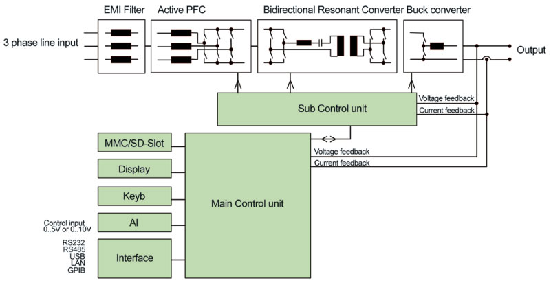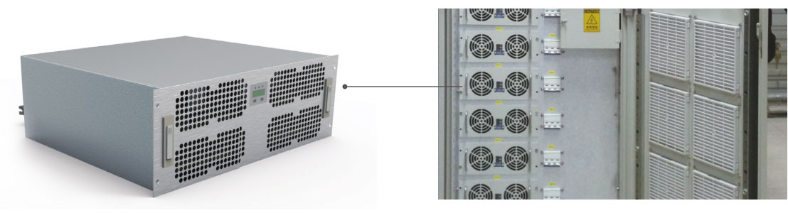MACS 模塊電源采用 IGBT 高頻技術(shù),風冷的散熱方式,本機帶 DSP 雙核 - 美國 TI公司,與監(jiān)控單元通信,機內(nèi)參數(shù)可通過CAN 接口由上級監(jiān)控單元設(shè)定或由上級監(jiān)控單元調(diào)節(jié)控制。采用軟開關(guān)技術(shù),效率高,電磁兼容性好,內(nèi)置 CPU 控制,工作穩(wěn)定可靠,寬的輸入電壓范圍。具有輸入過欠壓保護、輸出限流保護、輸出過壓保護、輸出短路保護、過溫保護及告警功能和模塊 n+1 并聯(lián)工作且具有均流功能。